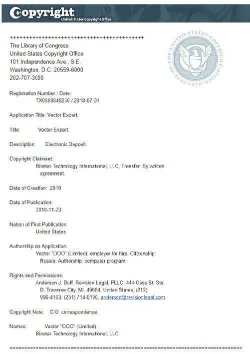 In addition to its trademark rights, Biostar also owns the software that is used by it medical devices. Because BIOSTAR/VECTOR biofeedback devices are some of its core products, Biostar also owns a United States federal copyright for the software that runs those devices. This software is not only protected by copyright, the source code is a trade secret owned by Biostar that it carefully protects.